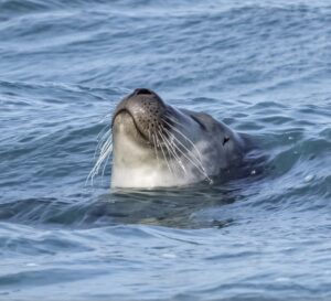 Vi sejler ikke tæt på dem men ligger og driver rundt i vandet eller kaster anker. Det er en fordel at medbringe en kikkert men vi har også en i kan låne
